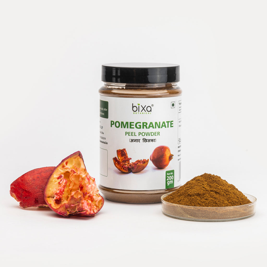 Dadim / Anardana/ Pomegranate (latin: Punica granatum) is an important fruit used commonly for maintaining good flora & fauna of the intestine. The Dried Fruit rind Powder of Dadim or Pomegranate supports pro-biotic effects to improve digestive power. As per Ayurveda, Dadim has beneficial action on vitiated vata & kapha. Pomegranate helps to dissolve or remove undigested toxic waste called Aam (in Ayurveda), which is main reason for various ailments. In Ayurveda the Dadim chaal (fruit rind) Powder by virtue of its kashaya-tikta (astringent-bitter) taste & presence of tannins, has been used from ancient times for ailments of Intestines like – diarrhoea, dysentery, bleeding from anal region, swelling of haemorrhoids etc. Pomegranate encourages healing (helps to arrest bleeding), boosts digestion and supports as liver tonic. Dadim chaal also helps to increase appetite and improve taste buds. Pomegranate peel Powder is full of anti-oxidants so regular intake maintains good health of heart muscles and coronary arteries. External uses of Dadim chaal Powder -make a paste of the Powder along with lemon juice or even rose water and use it on your face, particularly for pimples or acne. Allow it to dry for some time then wash it off completely along with lukewarm water. For Facial glow - take two spoonfuls of Dadim chaal Powder , add little milk into it. In case you have oily skin, add rose water on the Powder rather than milk making a paste from it. Apply this particular paste in your face whilst keeping it till it dries. Wash the face with lukewarm water and try utilizing the Powder at least two times per week for much better results. For Gargling -take 2 tsp of Powder and boil them in water. Now strain the concoction and allow it to cool for a while. Next, gargle with this particular water frequently to obtain rest from sore throat, tonsil pains and bad breath. Massaging gums along with pomegranate peel Powder helps in calming swollen, inflamed as well as bleeding gums. Pomegranate Powder combined with tiny quantities of freshly ground black pepper may be used as a toothPowder to prevent dental caries.