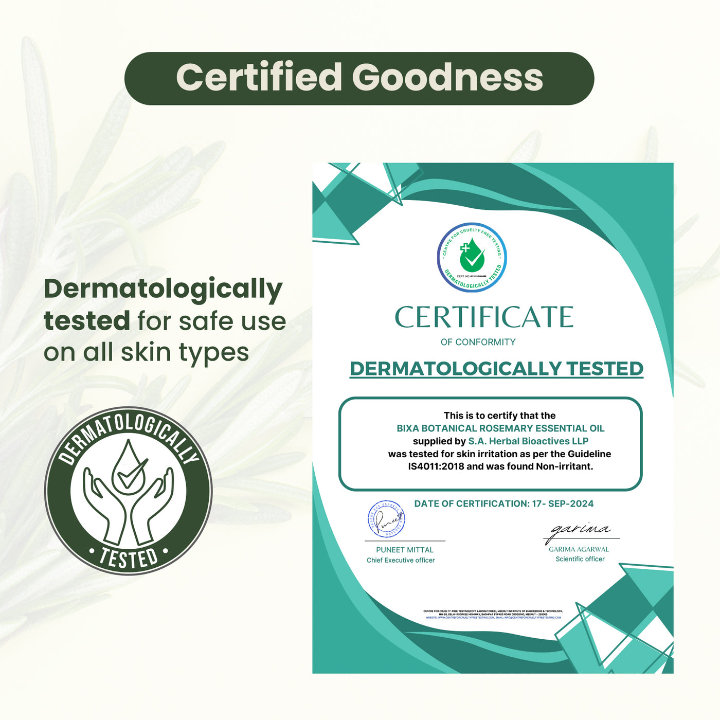Discover the benefits of Bixa Botanical 100% Rosemary Essential Oil, backed by 140 years of expertise. This hair oil promotes faster growth and reduces hair fall, helping combat receding hairlines and thinning hair.